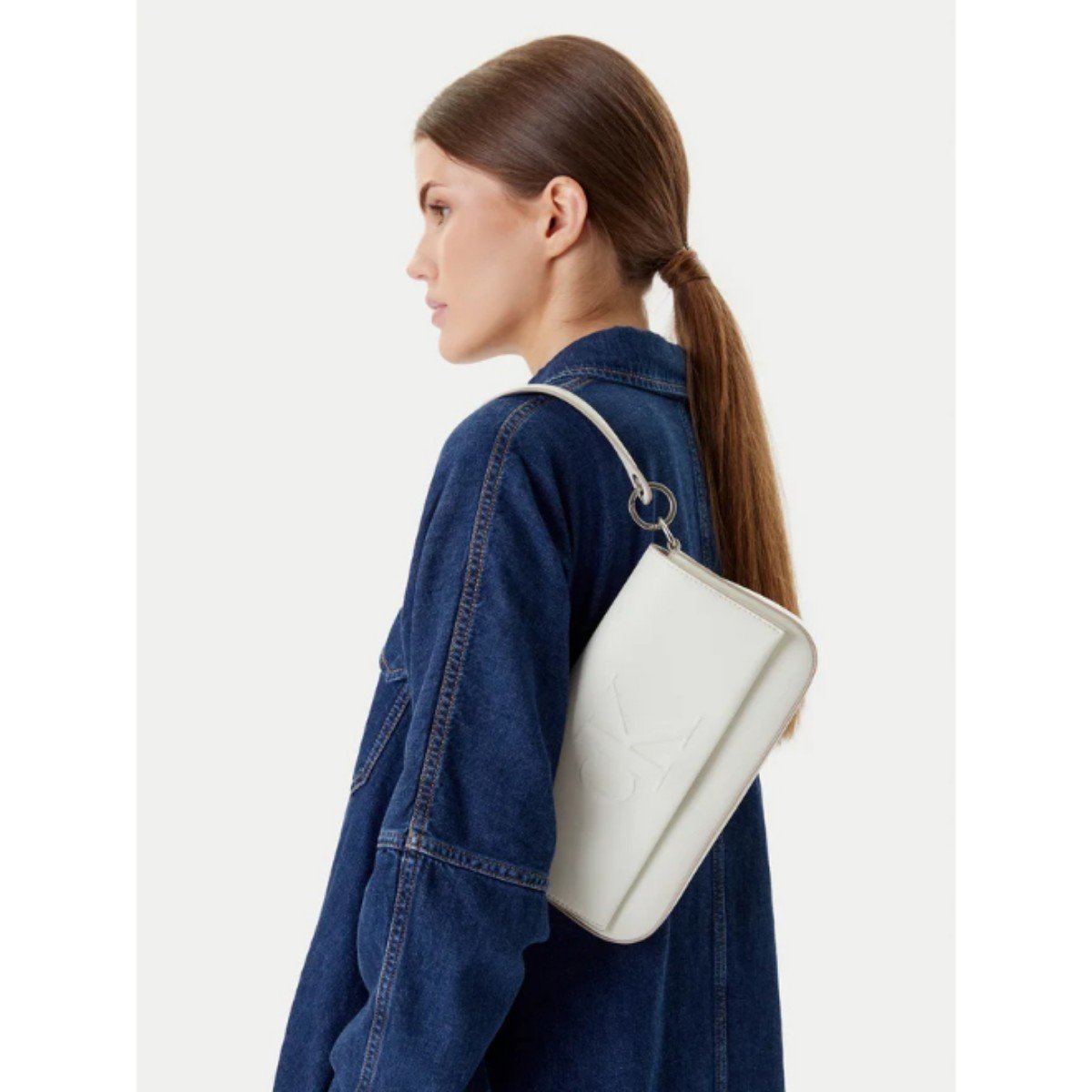Ck Lv04k3148g Sculpted Flap Shoulder Pouch25 Kadın Çanta – BEYAZ
