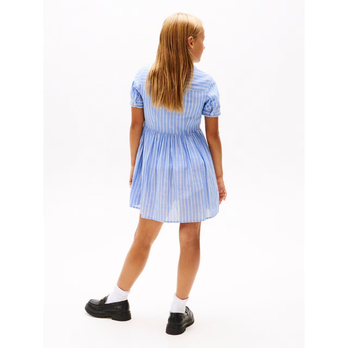 Th Kg0kg08579 Strıped Ss Kız Çocuk Elbise – MAVİ