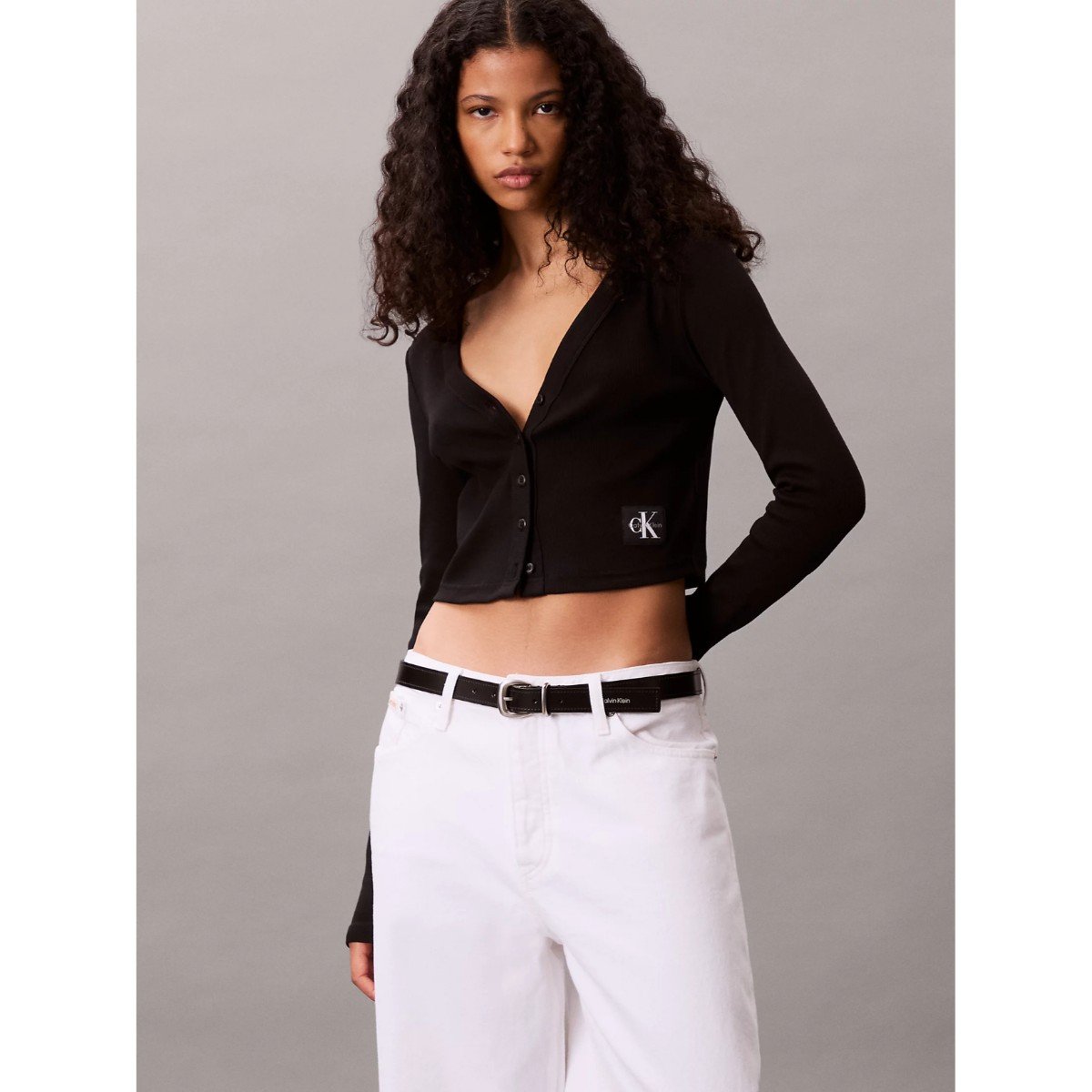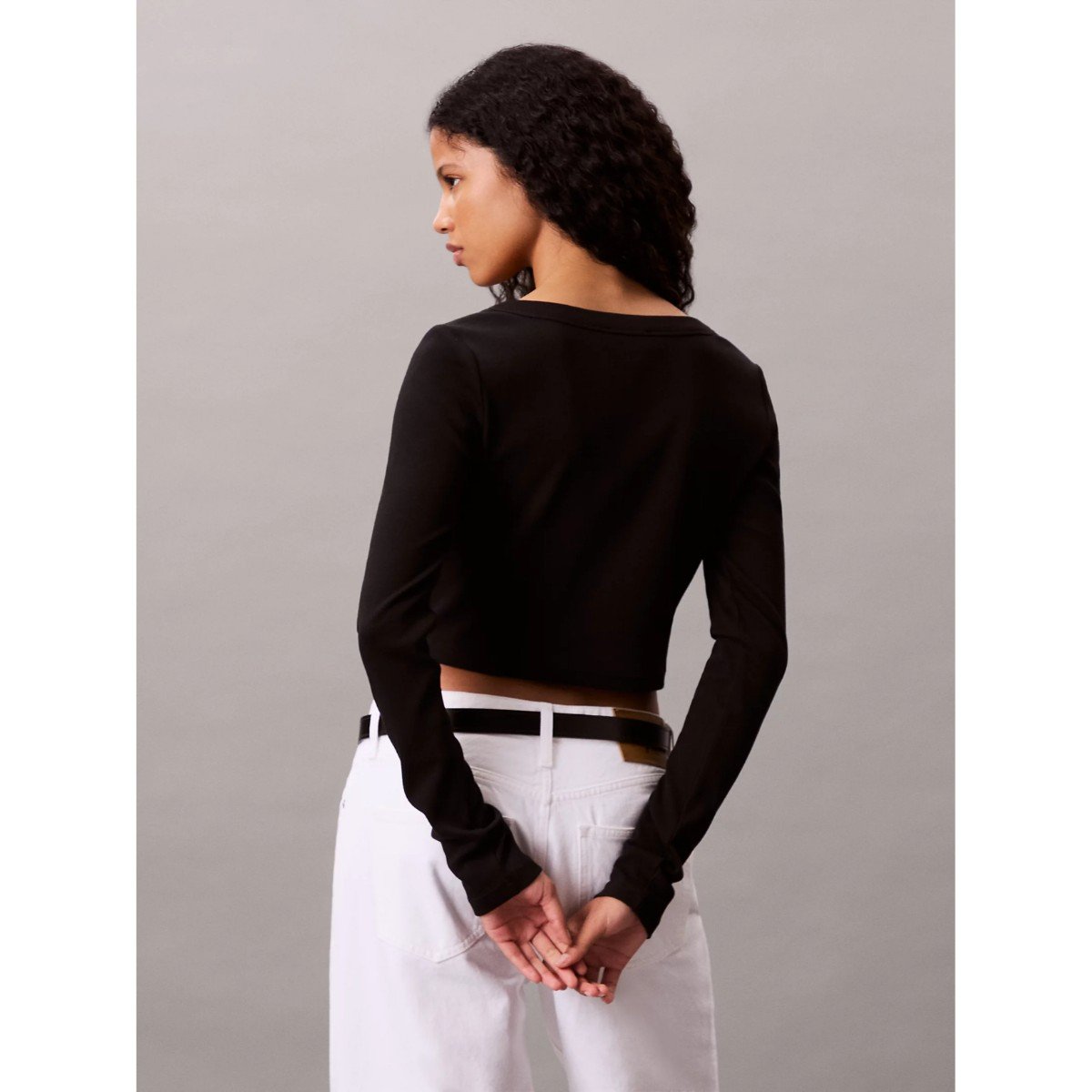 Ck Lv047c204g Ls Woven Label 2×2 Baby Rıb Card Kadın Bluz – SİYAH
