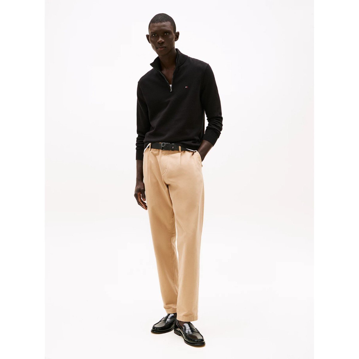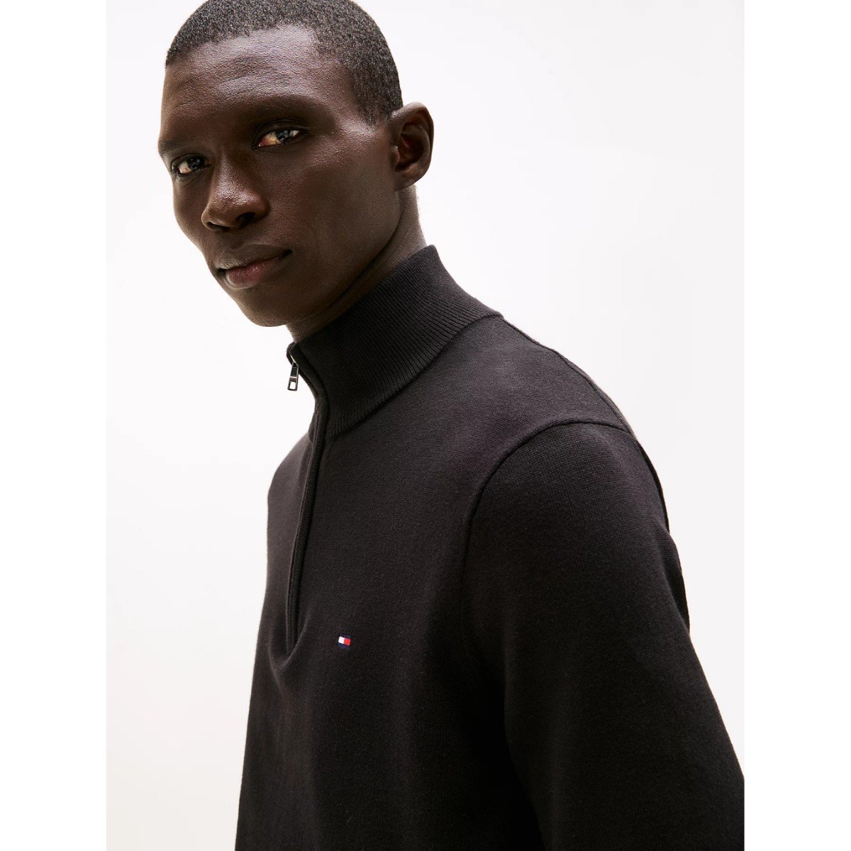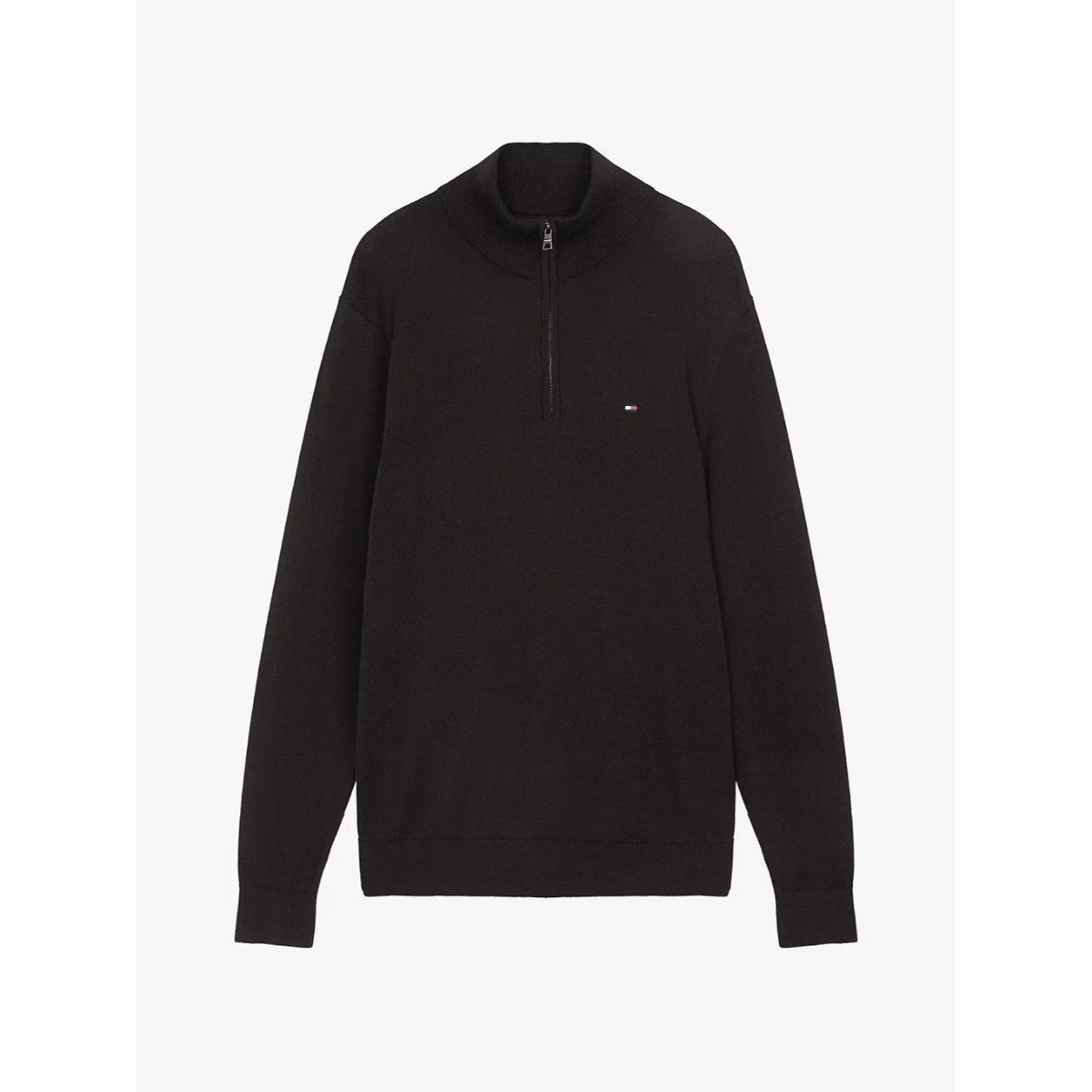 Th Mw0mw37331 Essentıal Cotton Zıp Mock Erkek Kazak – SİYAH