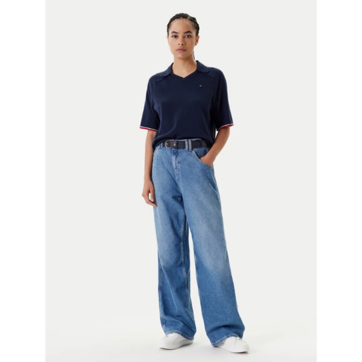 Th Ww0ww45694 Co Jersey Stch Polo V-nk S/s Kadın Sweaters – LACİVERT