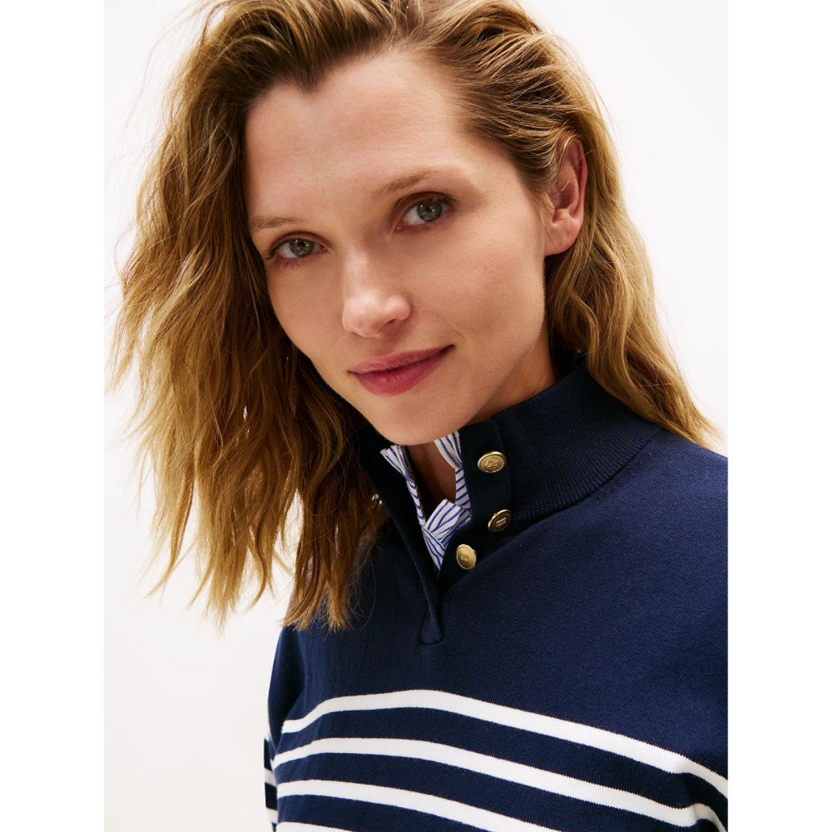 Th Ww0ww47467 Co Jersey Gold Btn Mock-nk Kadın Sweaters – KREM-LACİVERT