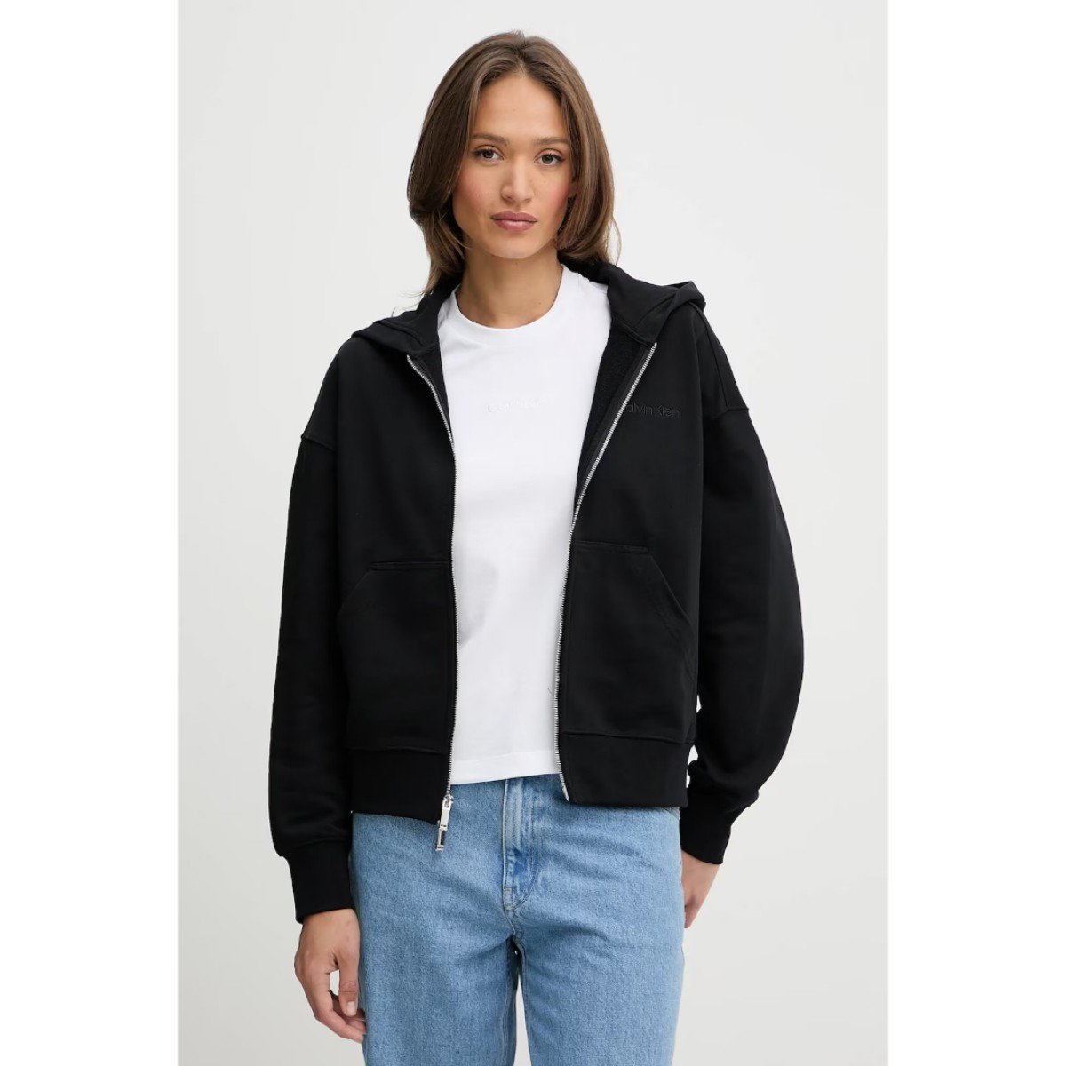 Ck Lv044c211g A- Logo Emb French Terry Fz Hood Kadın Sweatshirt – SİYAH