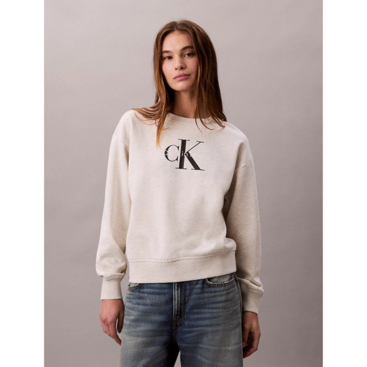Ck Lv047b234g Ls Monologo French Terry Rlxd Cr Kadın Sweatshırts – GRİ