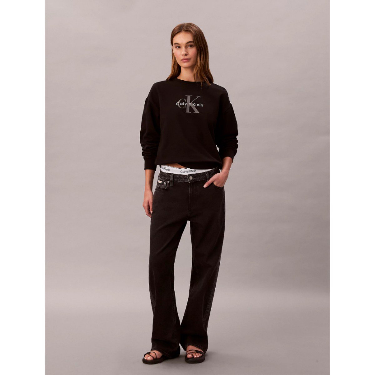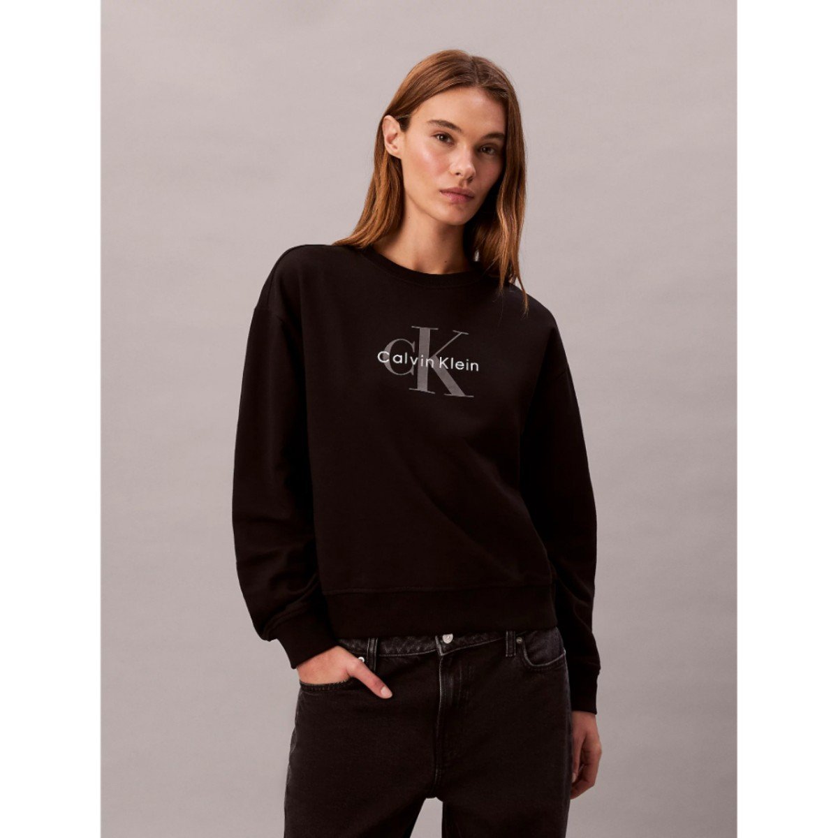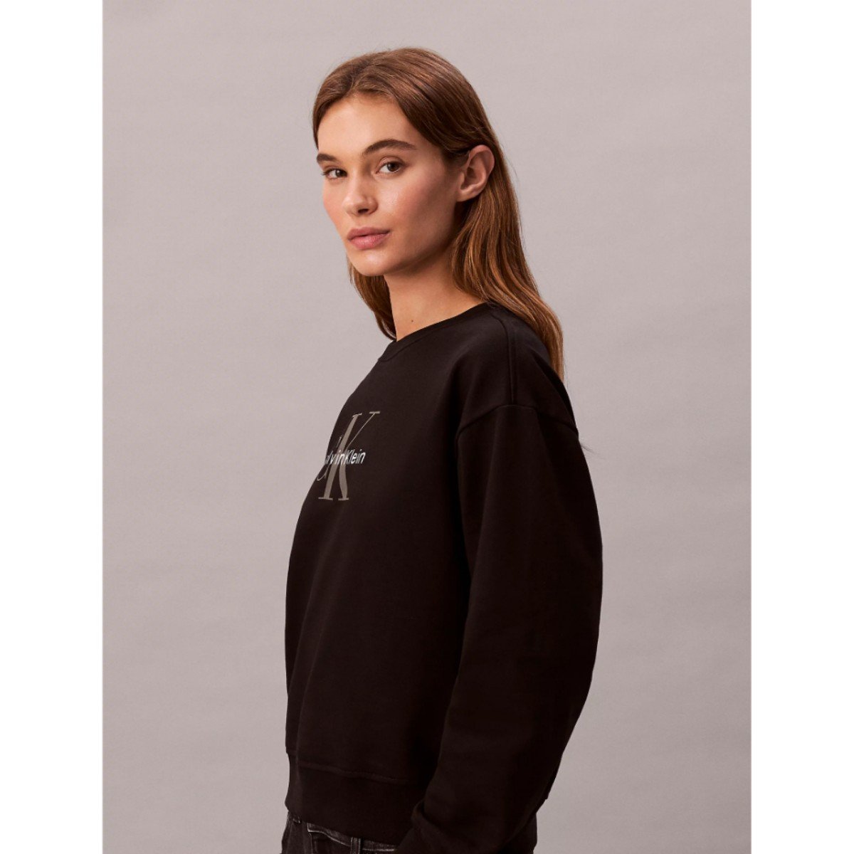 Ck Lv047b234g Ls Monologo French Terry Rlxd Cr Kadın Sweatshırts – SİYAH