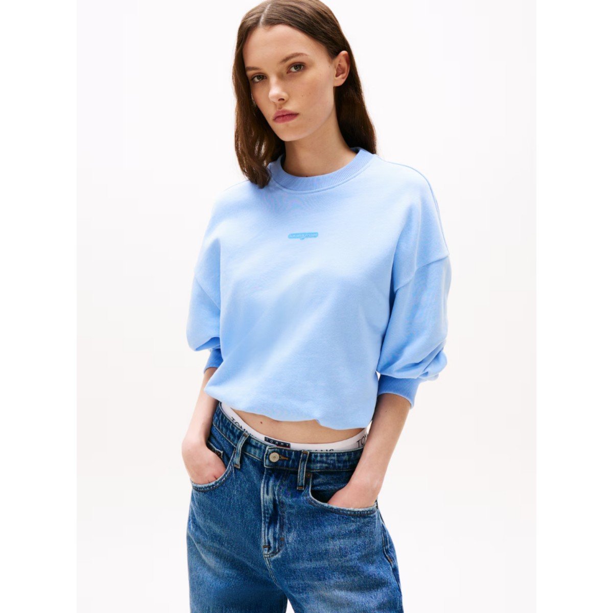 Th Dw0dw20947 Tjw Bxy Crp Scrıpt Lbl Crew Ext Kadın Sweatshirt – MAVİ