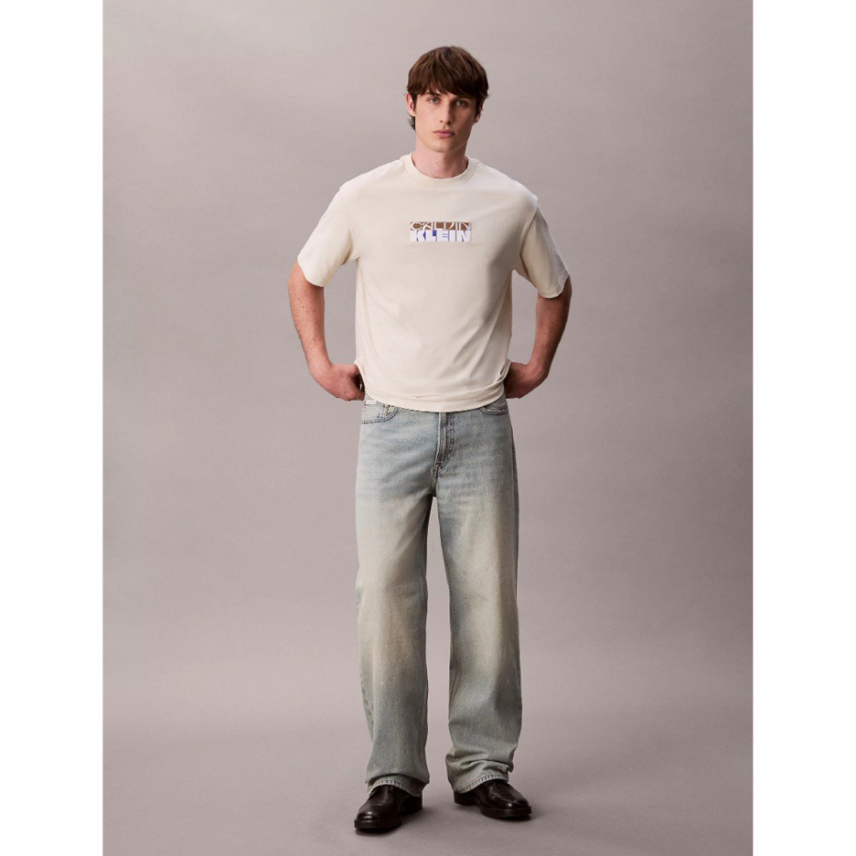 Ck Lv04rd808g Ss 16s Tc Calvın Kleın Block Gra Erkek Tshırt – KREM