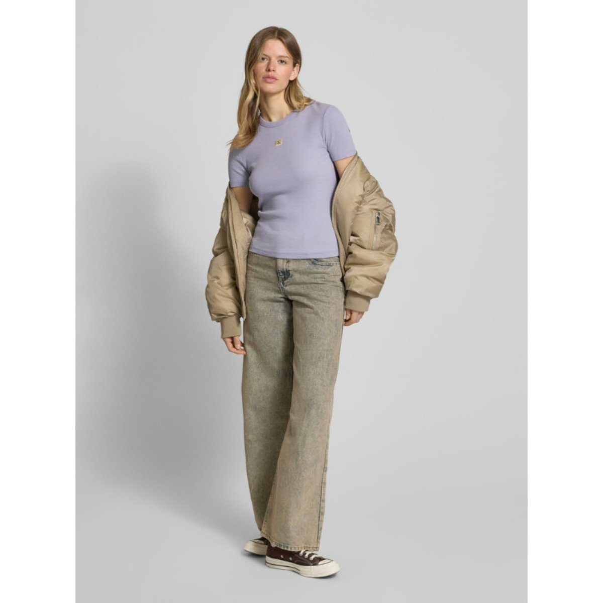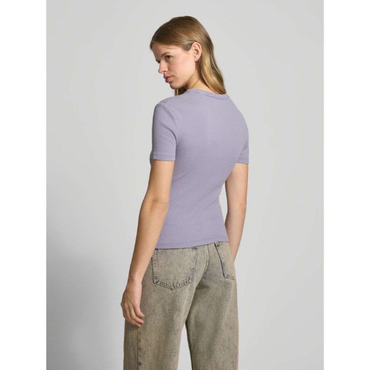 Ck J20j225244 Washed Woven Label Rıb Fıt Tee Kadın Tshırt – MOR
