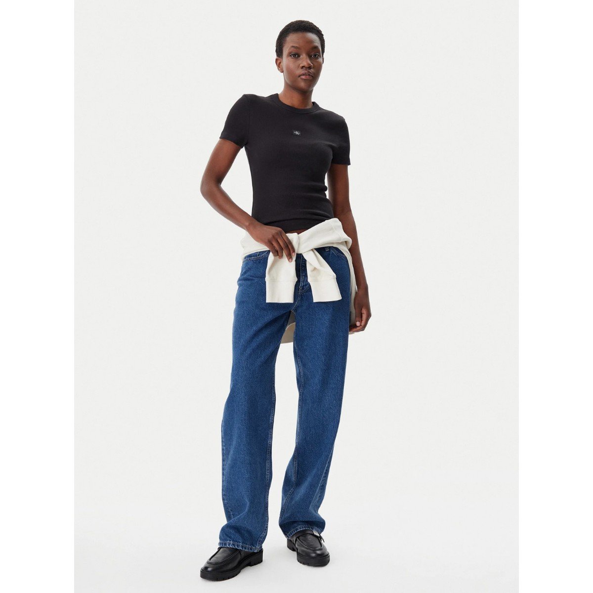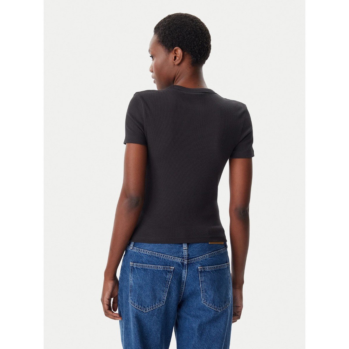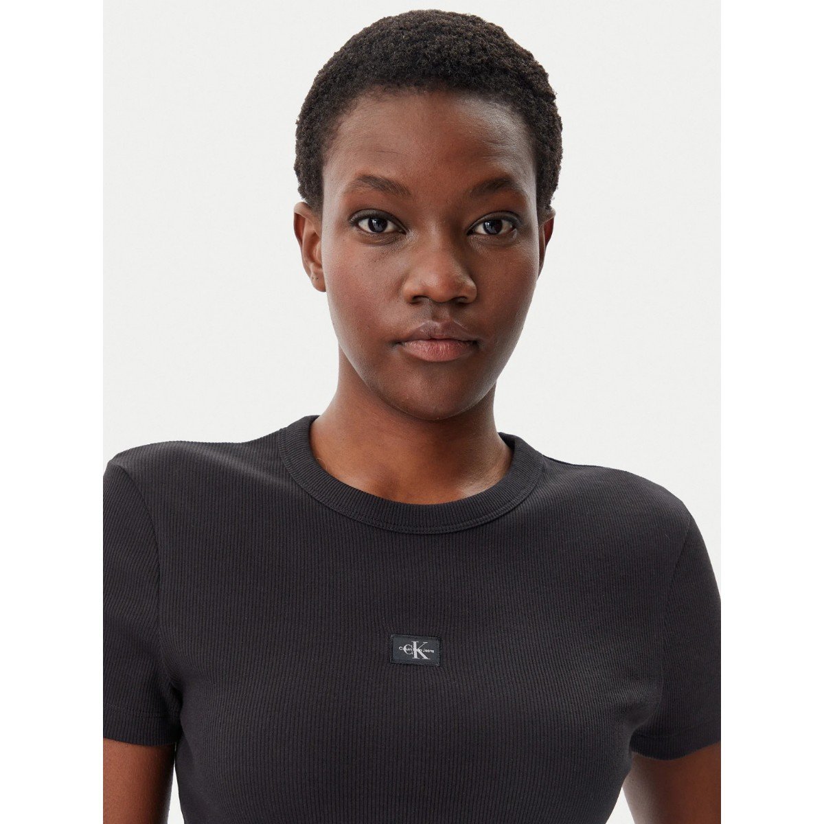Ck J20j225245 Woven Label Rıb Fıtted Tee Kadın Tshırt – SİYAH