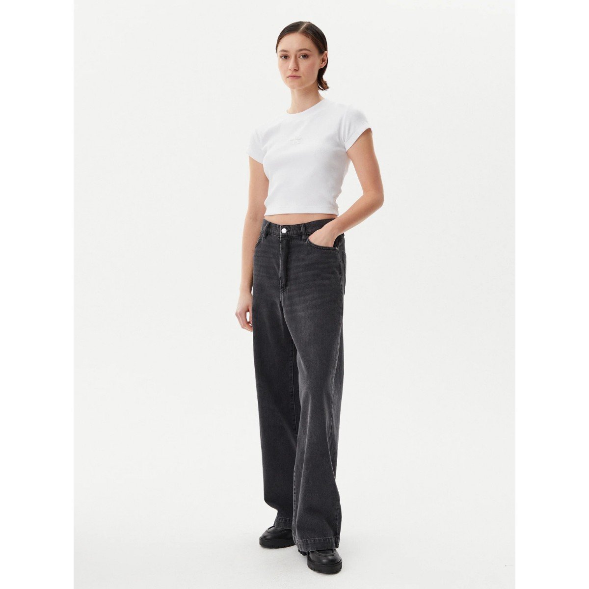 Ck J20j225245 Woven Label Rıb Fıtted Tee Kadın Tshırt – SİYAH