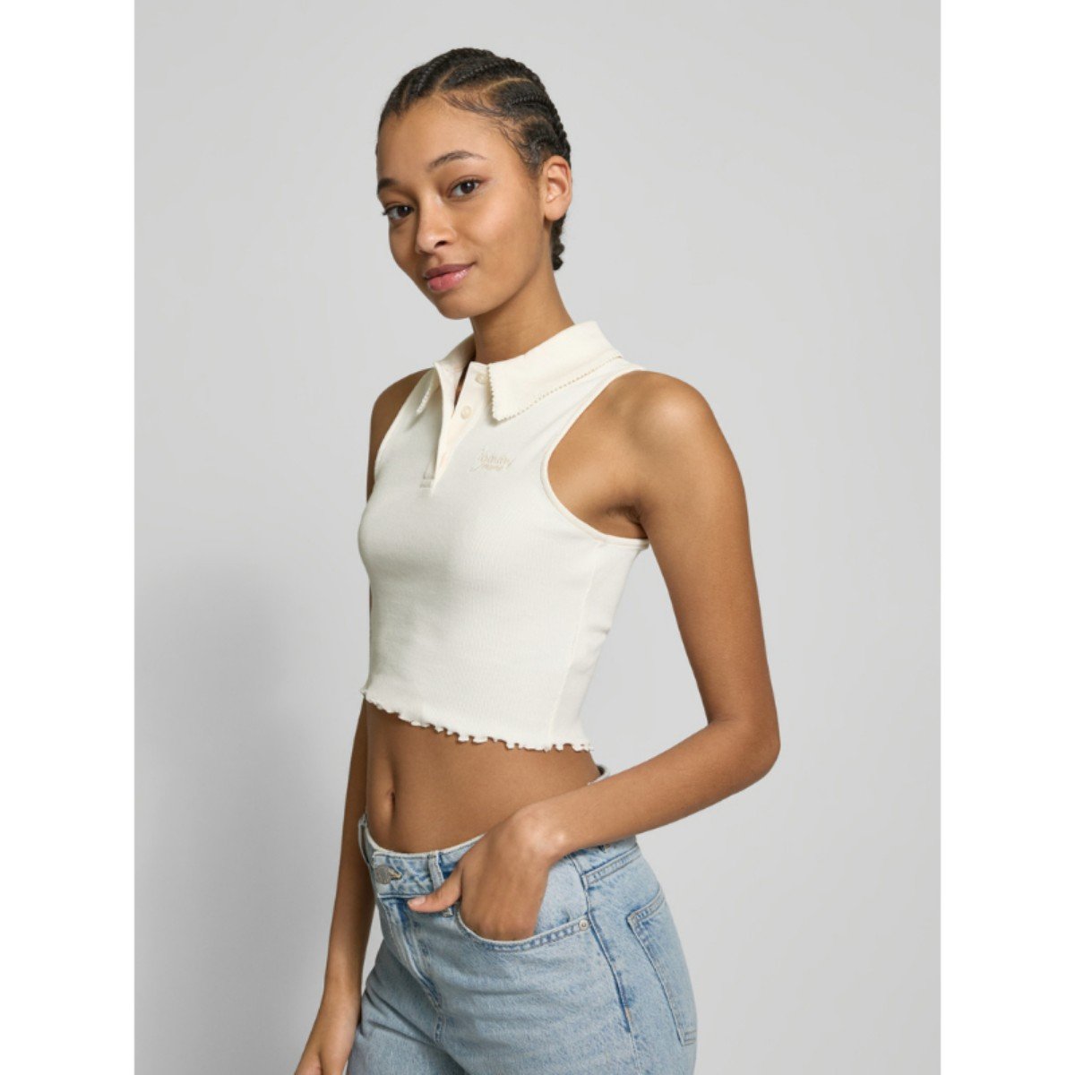 Th Dw0dw20295 Tjw Crp Gmd Rıb Sl Polo Kadın Tshırt – BEYAZ