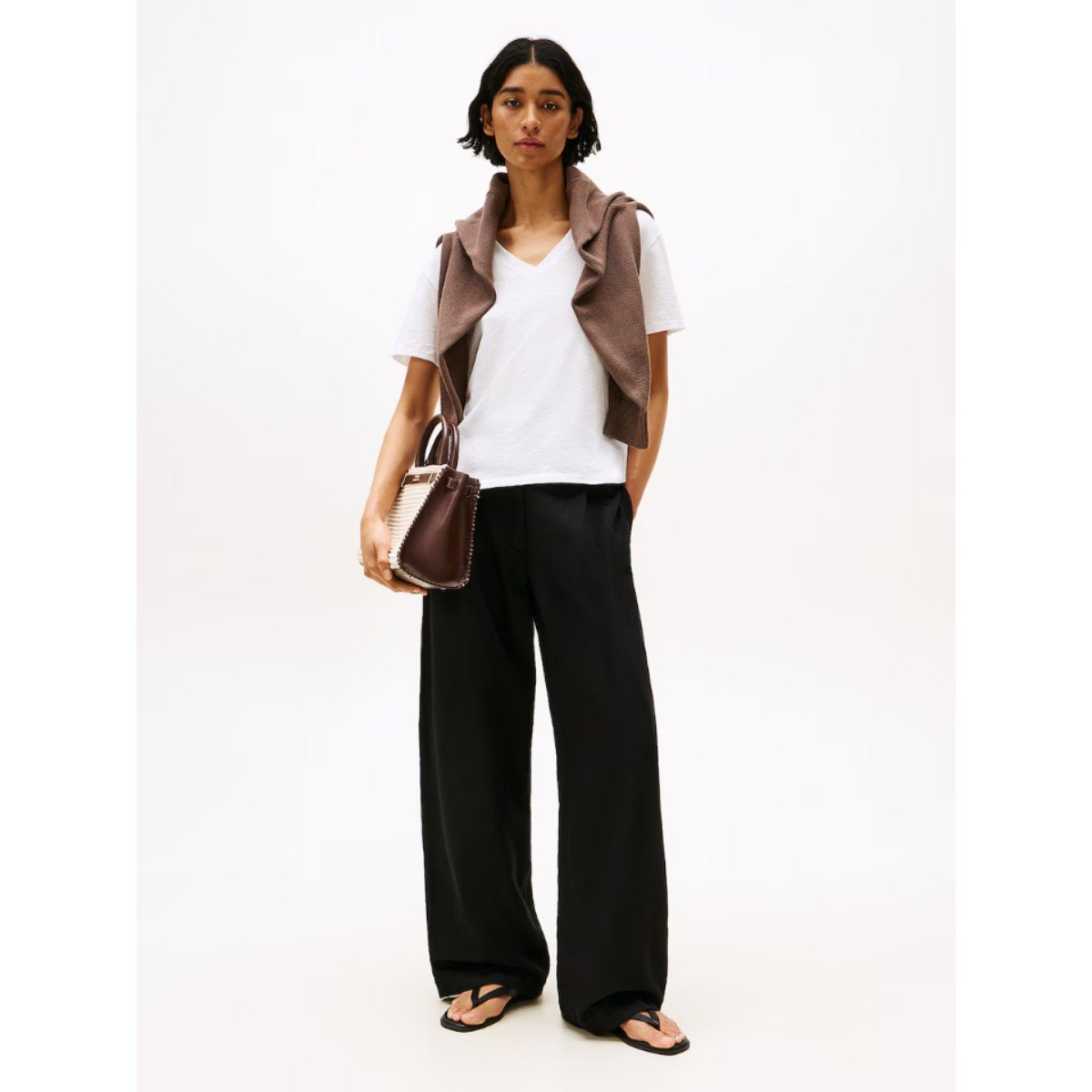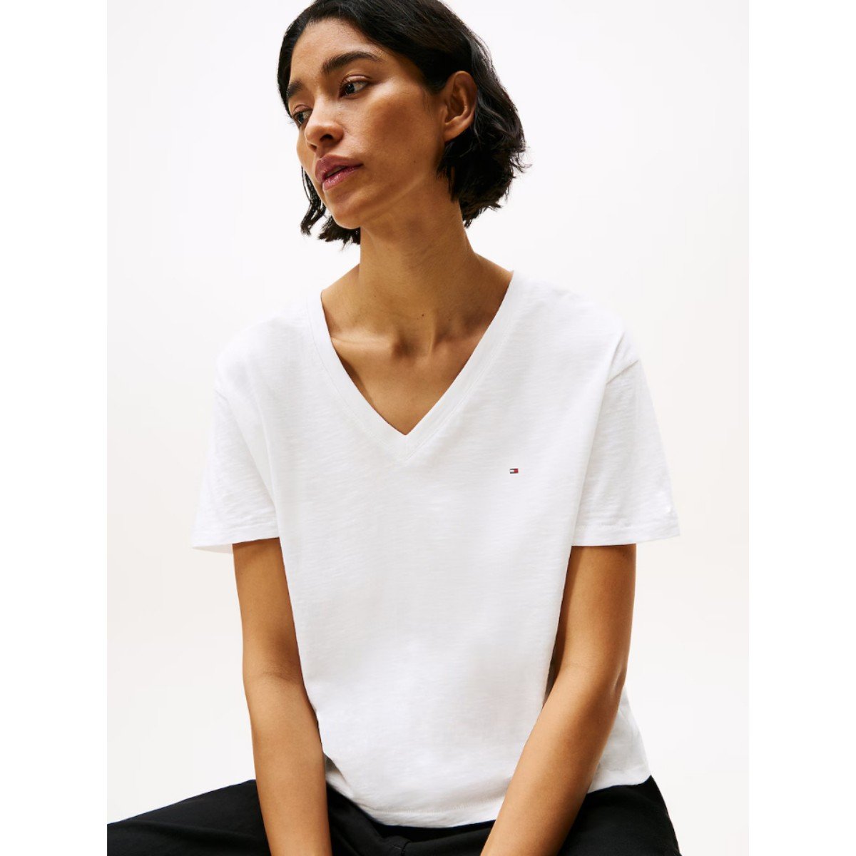 Th Ww0ww43901 Slub Mdrn V-nk Ss Kadın Tshırt – BEYAZ
