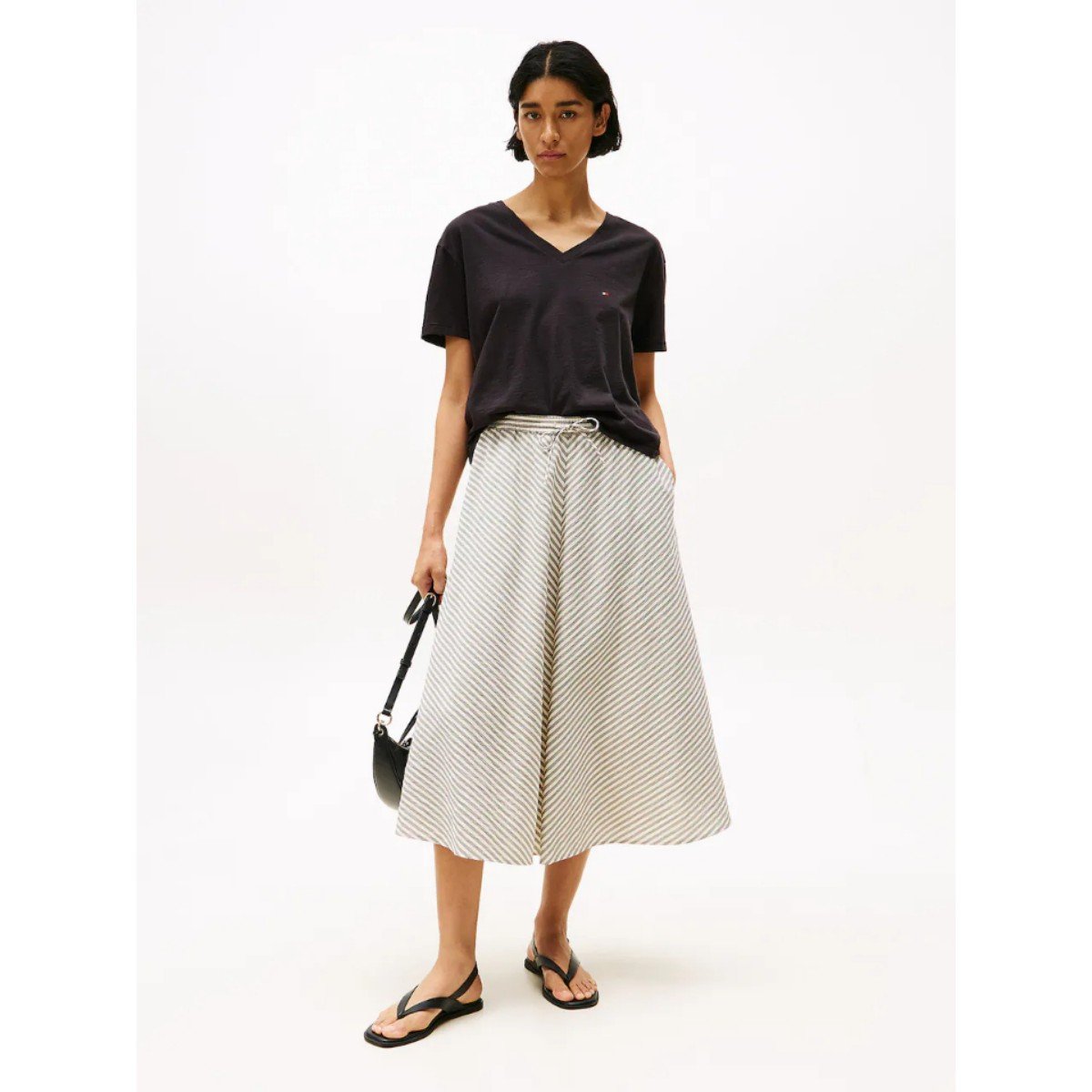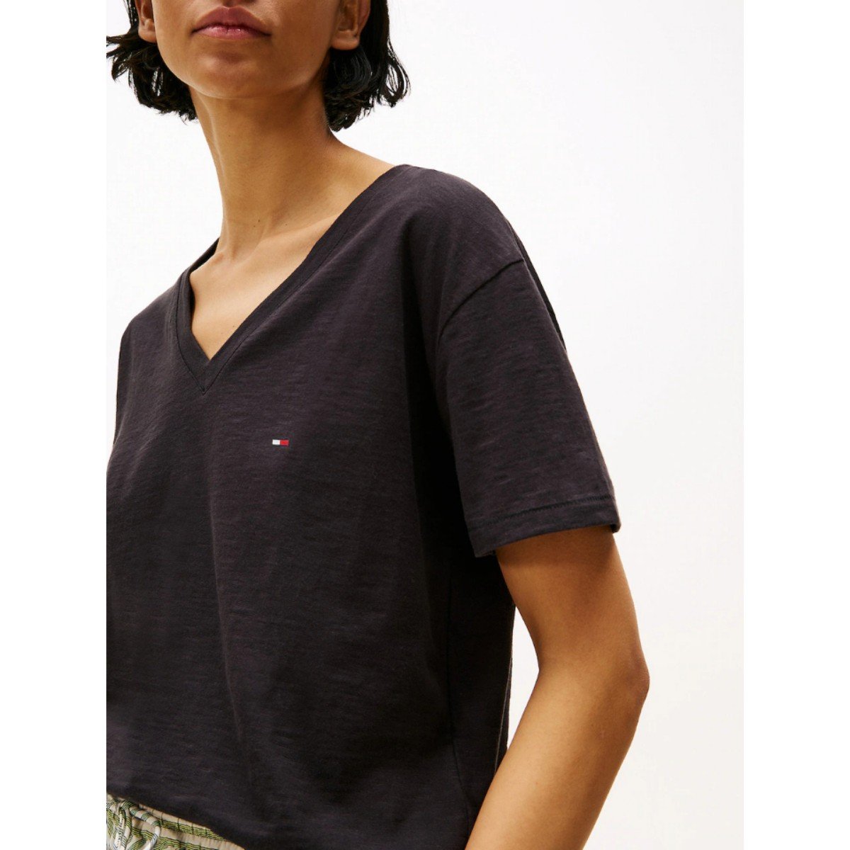 Th Ww0ww43901 Slub Mdrn V-nk Ss Kadın Tshırt – SİYAH
