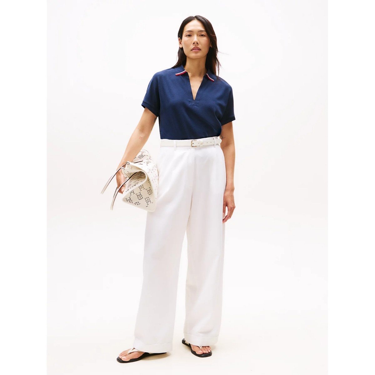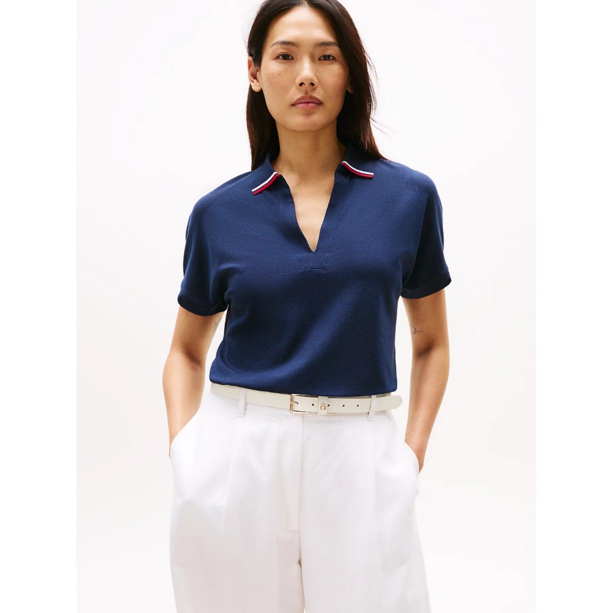 Th Ww0ww46512 Lyocell Tıppıng Open Ss Polo Kadın Tshirt – LACİVERT