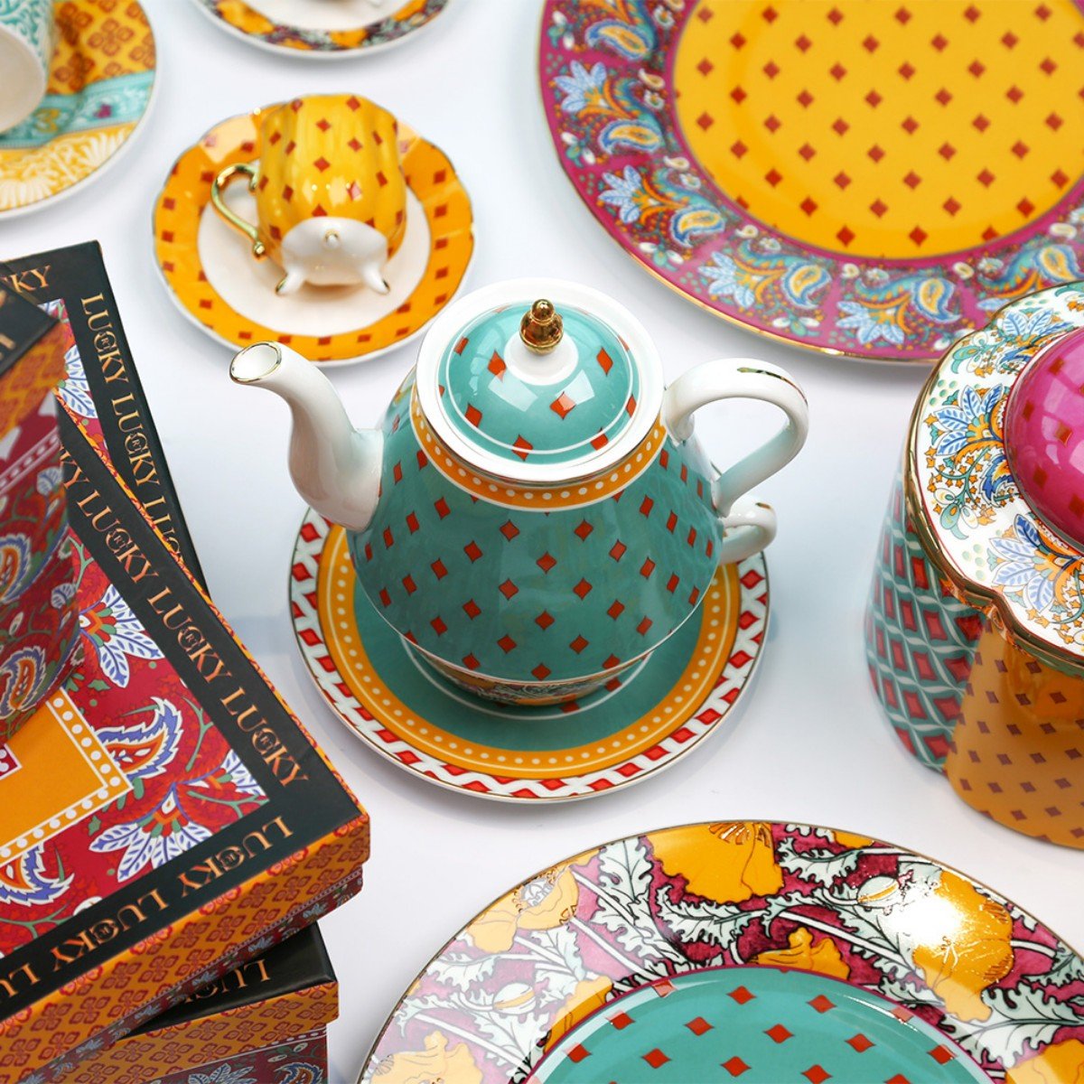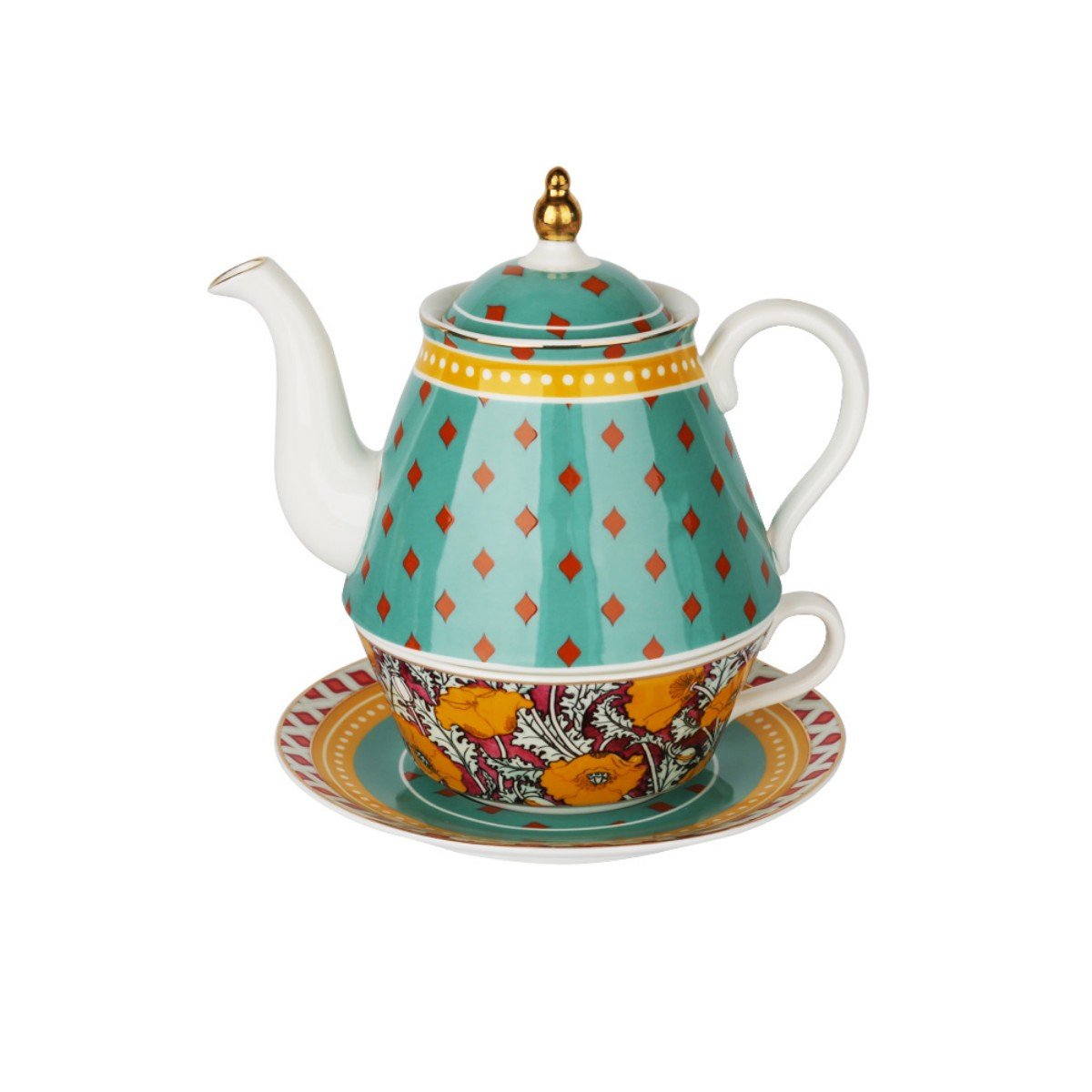 Lyhd 584 Eliana Bone Porselen Karışık Desenli Tek Kişilik Demlik&fincan Seti – STANDART