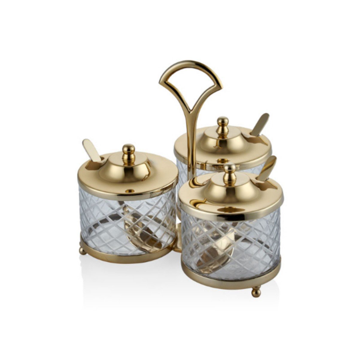 1pa-13852g Dc Standlı Yuvarlak 3lü Baharatlık Seti 21x21x19,5cm Altın – STANDART