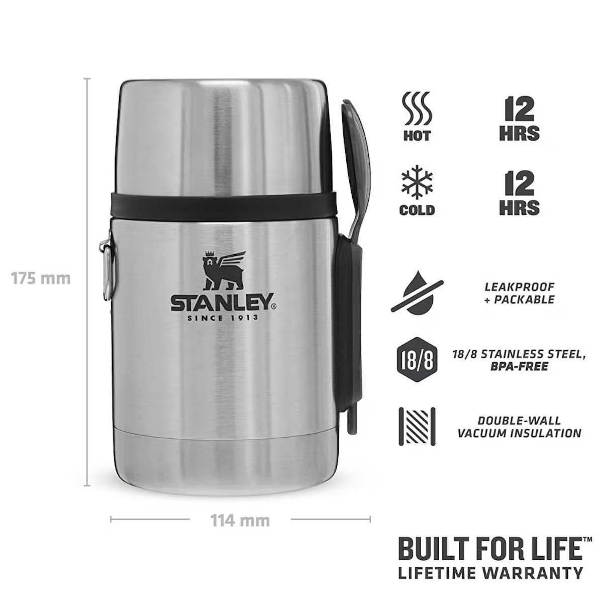 Stanley 10-01287-032 Stanley Adventure Vakumlu Yemek Termosu 0.53lt Çelik Gri – GRİ