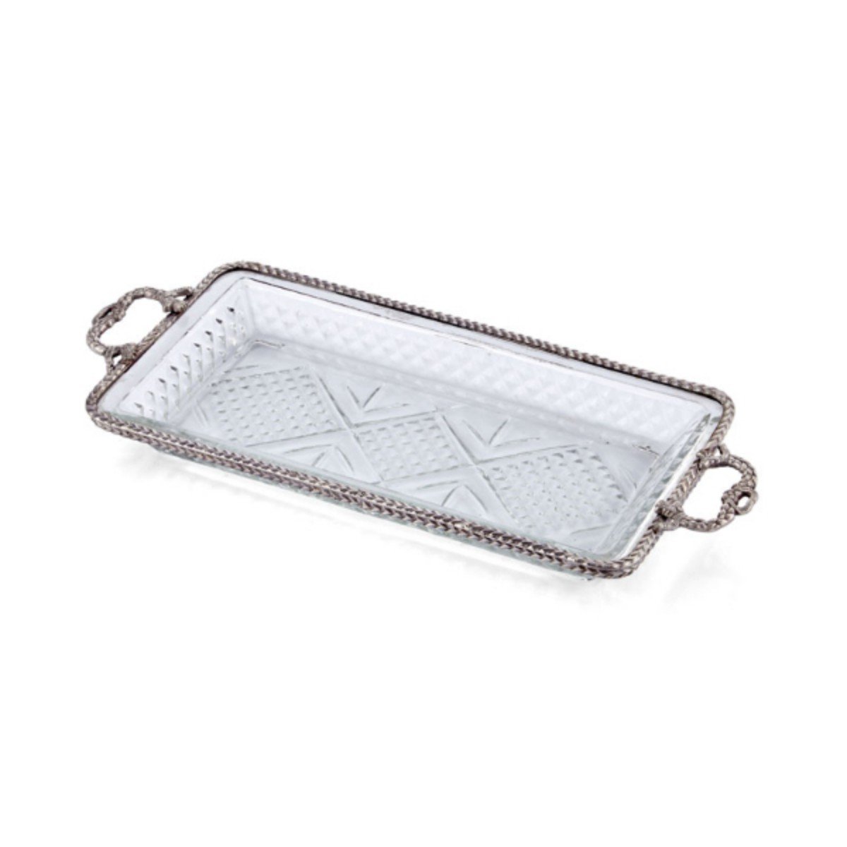 1hq-24811 Cam Dekoratıf Desenlı Tepsı Sılver 38×16,5×4,5cm – STANDART