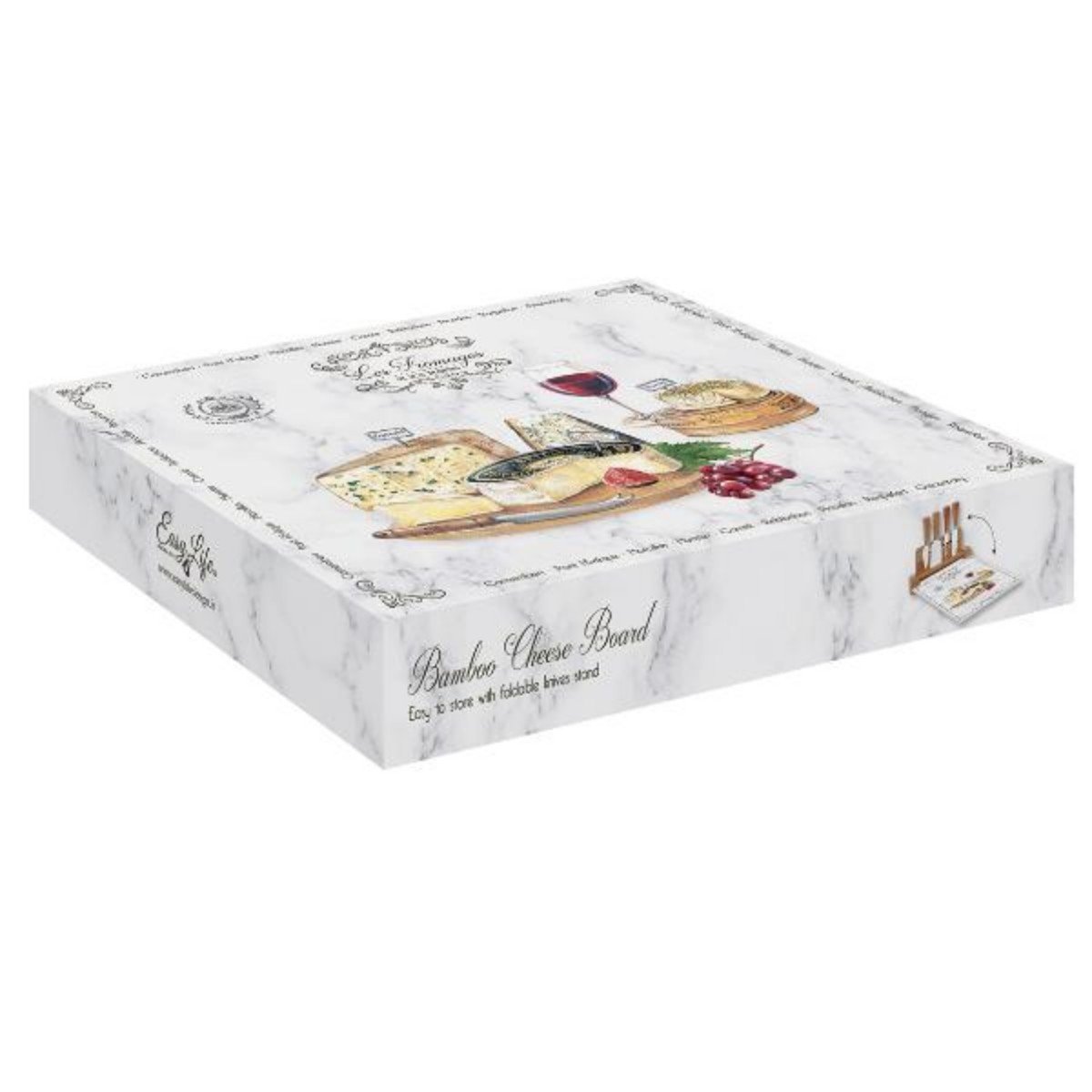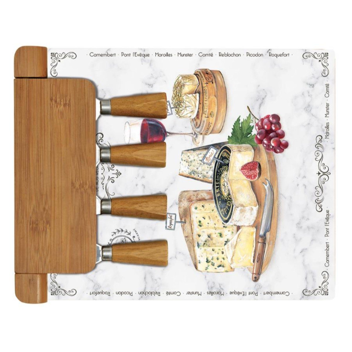0848 Lesf Peynir Tabağı Bambu Standlı Cam Sunumluk Ve 4 Peynir Bıçağı 30x25cm – STANDART