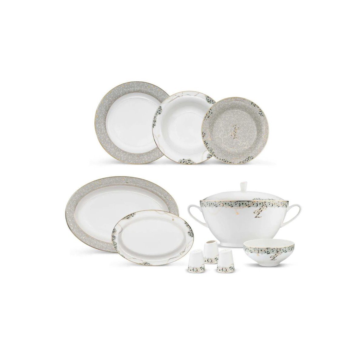 Janti Grey 60 Parça 12 Kişilik Yemek Takımı – GRİ
